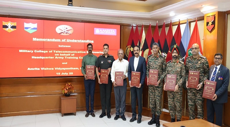 एम एच ओ डब्ल्यू /फरीदाबाद, 17 जुलाई 2025: भारत की साइबर सुरक्षा क्षमताओं को मजबूत करने की दिशा में एक अहम पहल करते हुए मिलिट्री कॉलेज ऑफ टेलीकम्युनिकेशन इंजीनियरिंग (एमसीटीई), एम एच ओ डब्ल्यू और अमृता विश्व विद्यापीठम के बीच एक रणनीतिक समझौता हुआ है। यह सहयोग उभरती तकनीकों में अनुसंधान, नवाचार और रक्षा बलों के लिए विशेष प्रशिक्षण को बढ़ावा देने पर केंद्रित है।